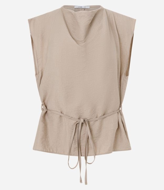 Blusa feminina confeccionada em viscose certificada através de boas práticas ambientais. Possui modelo sem mangas, com modelagem reta e caimento solto. Possui decote discreto, amarração frontal ajustável presa por passantes laterais, permitindo ajustar a silhueta e as costas têm corte amplo e contínuo.