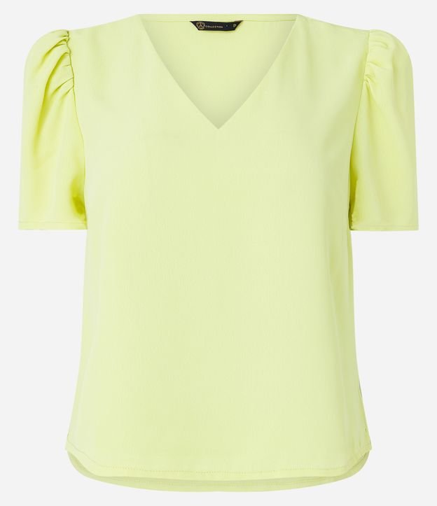 Blusa Manga Curta em Crepe com Pregas nos Ombros