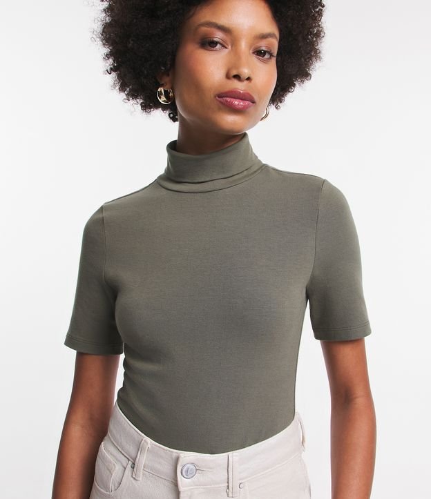 Blusa Manga Curta em Meia Malha com Gola Alta