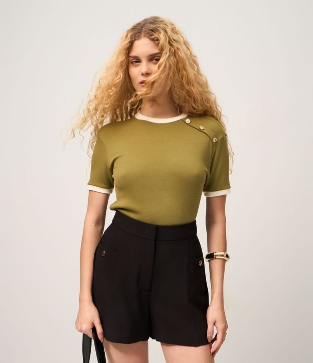 Blusa Manga Curta em Ribana Com Botões no Ombro Verde