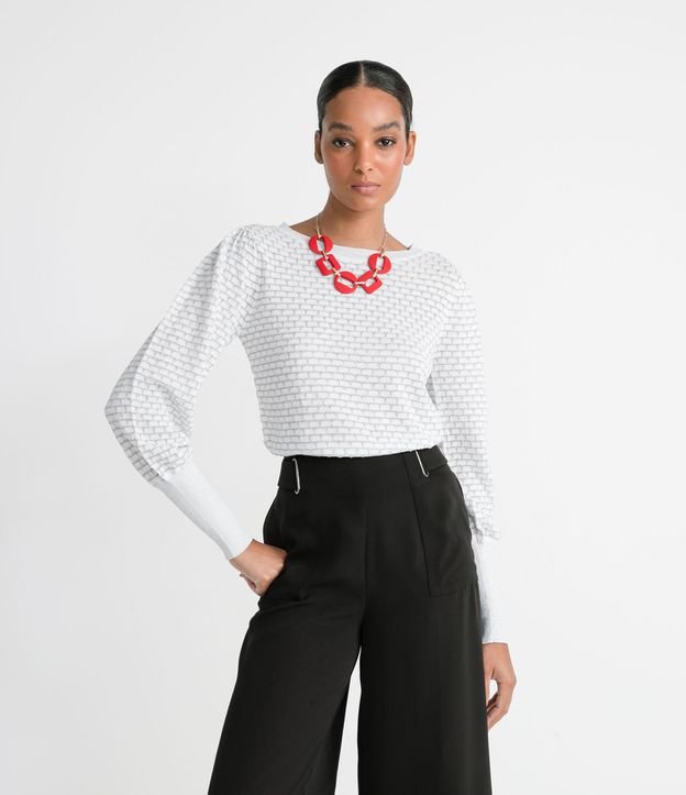 Blusa em Tricô Texturizada com Manga Longa Bufante