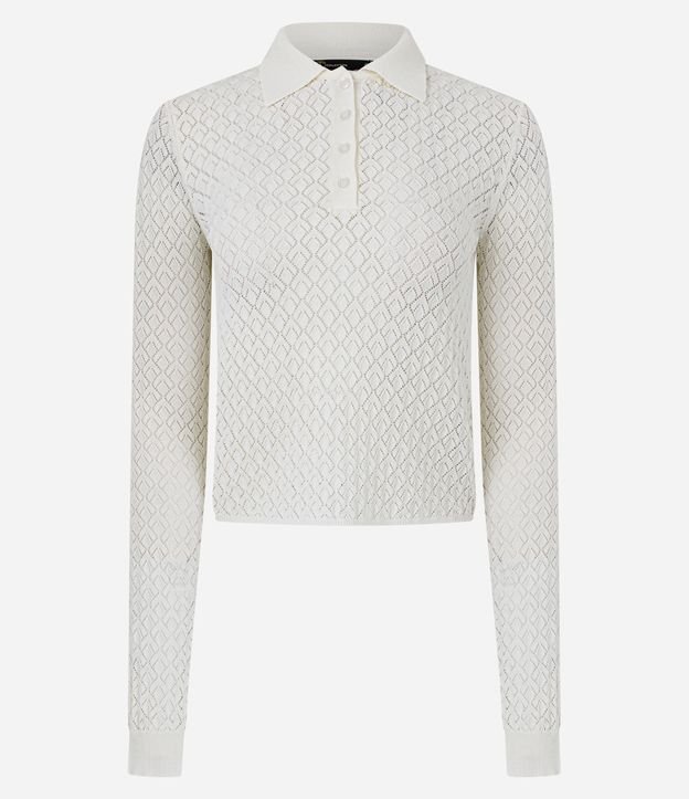 Blusa Manga Longa com Transparência e Gola Polo Off White