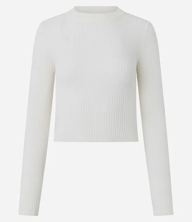 Blusa Manga Longa em Chenille com Gola Colada Branco