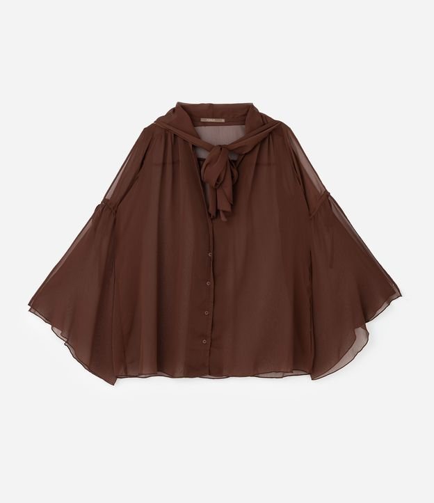 Blusa Manga Longa em Crepe com Amarrações Curve & Plus Size Marrom