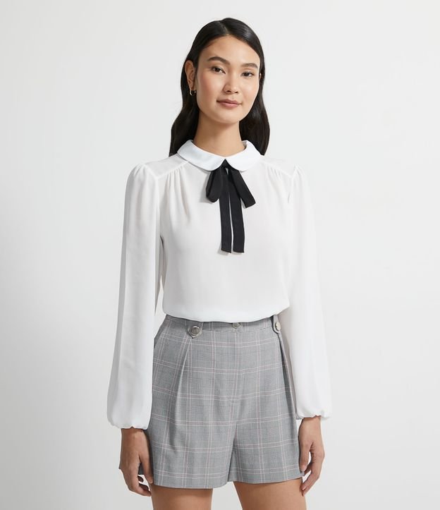 Blusa Manga Longa em Crepe com Gola Boneca e Amarração
