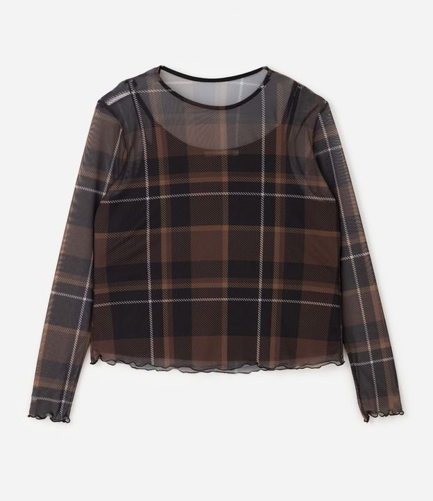 Blusa confeccionada em tule com elasticidade, apresentando estampa xadrez fullprint e acabamento leve. O modelo possui manga longa ajustada, decote redondo com viés rebatido e modelagem ajustada, conforme visual da peça. Conta com anágua interna, que proporciona maior conforto e cobertura, mantendo a transparência característica do tule apenas na camada externa. Desenvolvida para a coleção Core Fundamental, linha Curve & Plus Size, é indicada para composições casuais com proposta fashion.