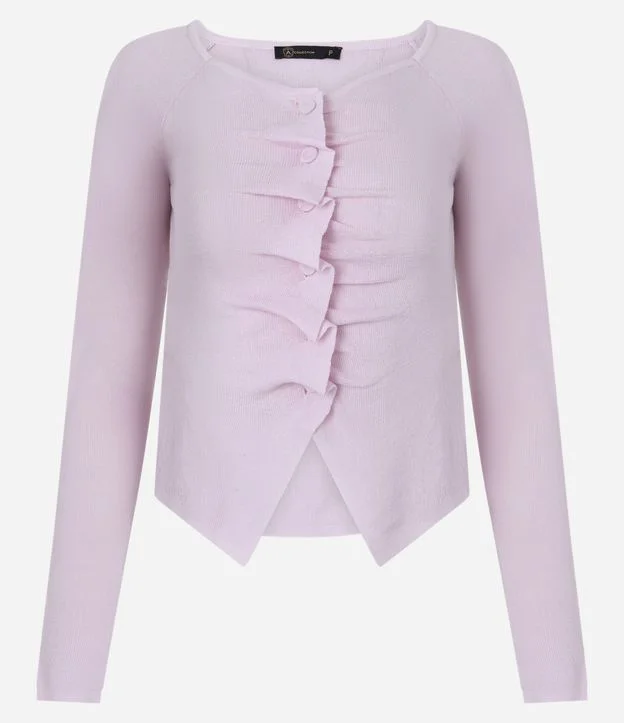 Blusa Manga Longa em Viscose com Botões e Detalhe Franzido Rosa