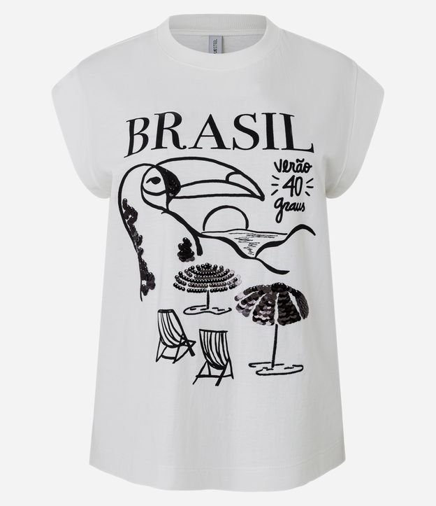 Blusa Muscle Tee com Estampa Brasil e Paetês Branco