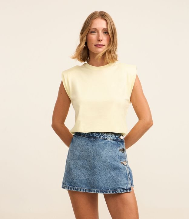 Blusa Muscle Tee em Algodão Sem Manga com Elástico na Barra Amarelo