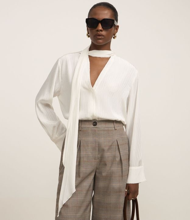 Blusa Office Wear Acetinada com Gola Laço Branco