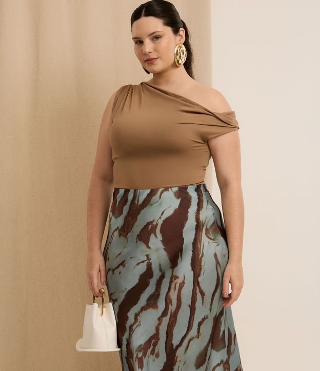 Blusa Ombro a Ombro Deslocado Curve & Plus Size Marrom