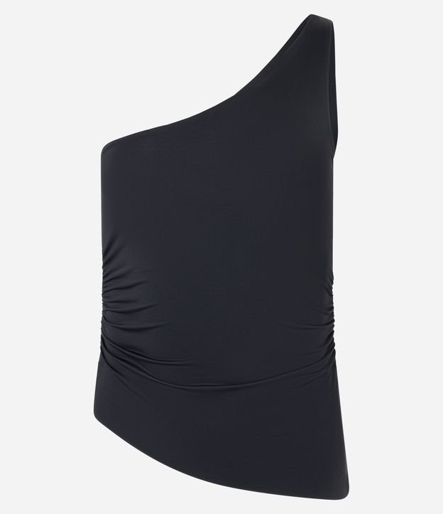 Blusa Ombro Único em Microfibra com Ponta Assimétrica Preto