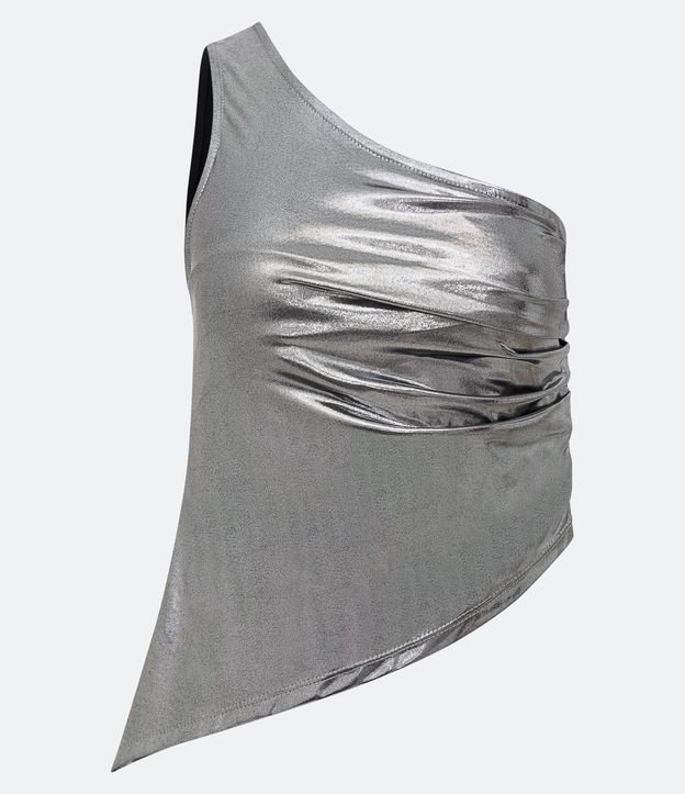 Blusa Ombro Único Metalizada com Franzido Lateral