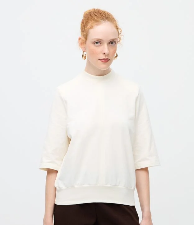 Blusa Oversized com Efeito Blusê e Ombreira Off White