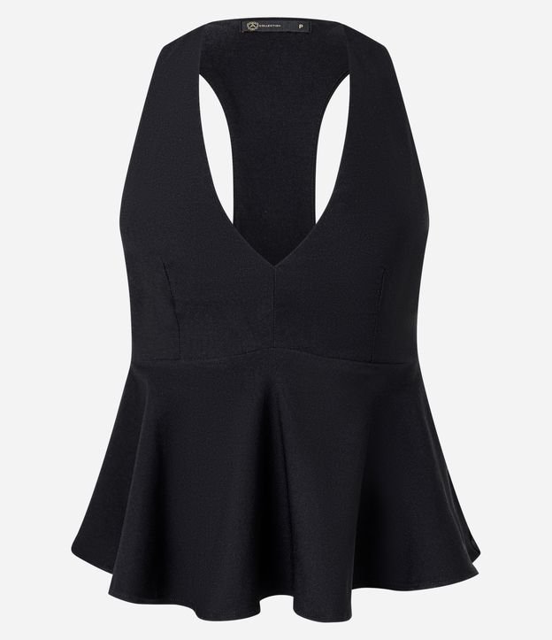 Blusa Peplum com Alça Nadador e Decote V Preto
