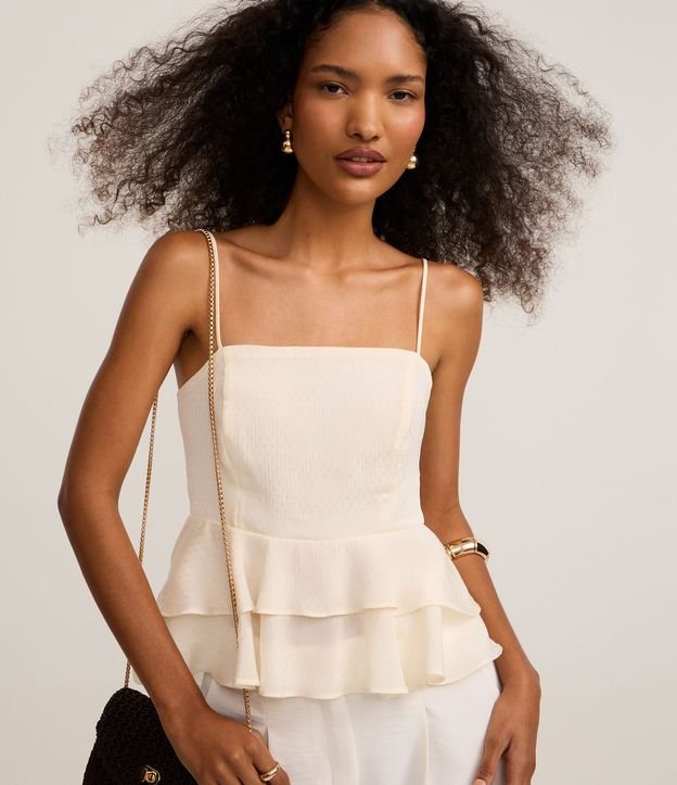 Blusa Peplum de Alça em Chiffon com Babados