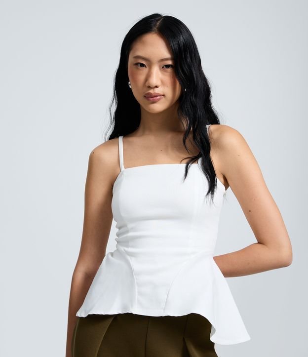Blusa peplum em bengaline com modelagem ajustada e alças finas que valorizam o visual feminino. O decote reto e o caimento estruturado garantem elegância ao look, ideal para compor produções modernas e versáteis. Confeccionada em viscose certificada, unindo estilo e responsabilidade.