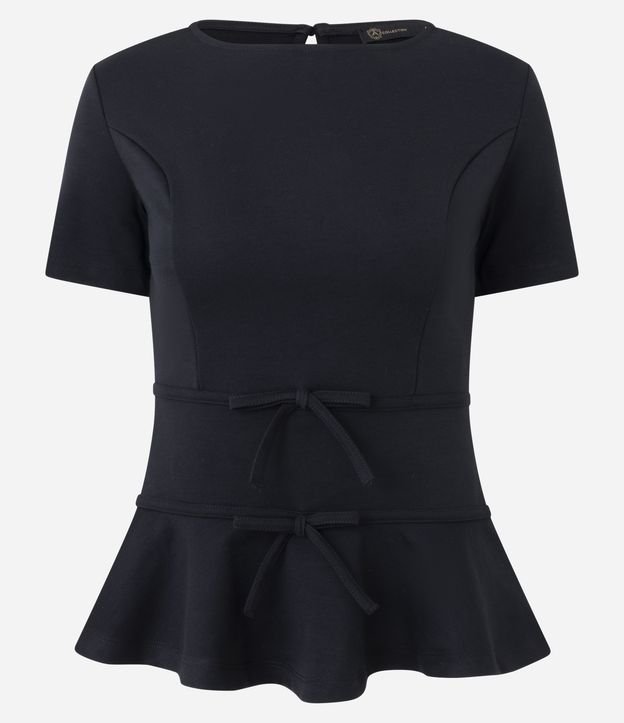 Blusa Peplum em Ponto Roma com Lacinhos Preto
