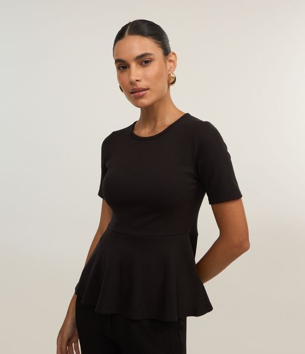 Blusa Peplum em Ribana com Babado na Barra