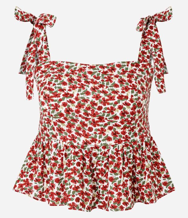 Blusa Peplum Floral com Alça de Amarração Vermelho