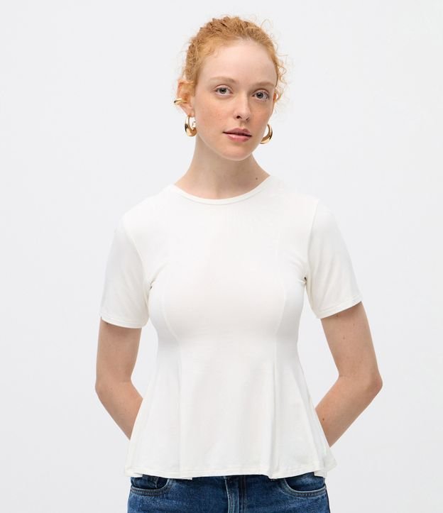 Blusa Peplum Manga Curta em Viscose com Recortes Branco