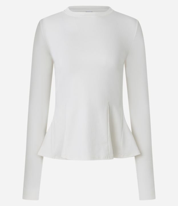 Blusa Peplum Manga Longa em Ponto Roma com Barra Ampla Branco