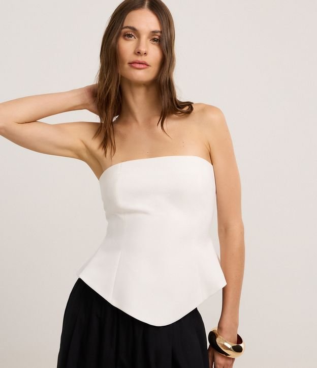 Blusa Peplum Sem Alça com Corte Alfaiatado Branco