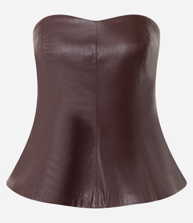 Blusa Peplum Tomara que Caia em PU com Decote Coração Marrom