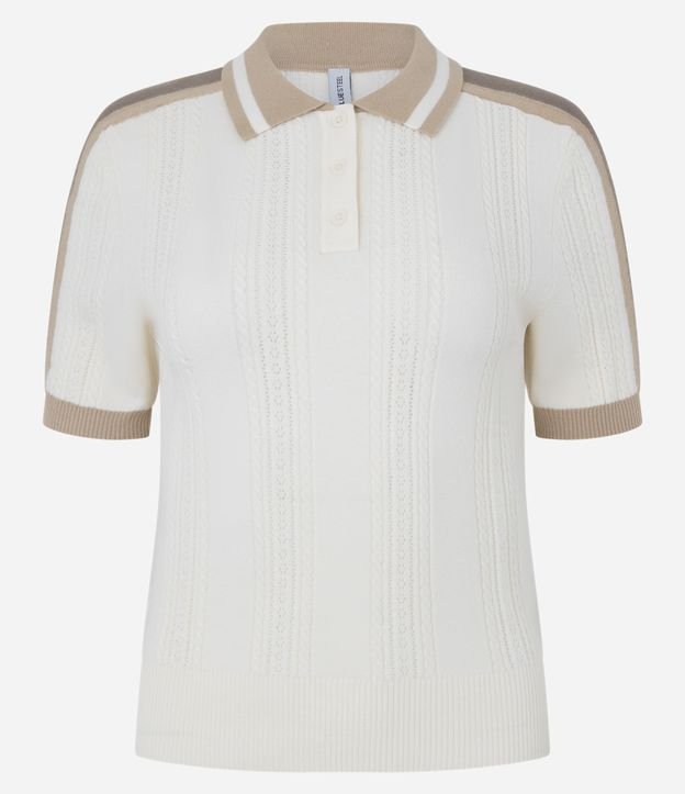 Blusa Polo em Tricô com Listra Lateral Off White