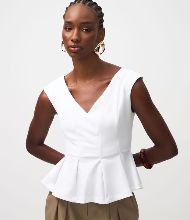 • Blusa Ponto Roma com Barra Peplum Branco 1