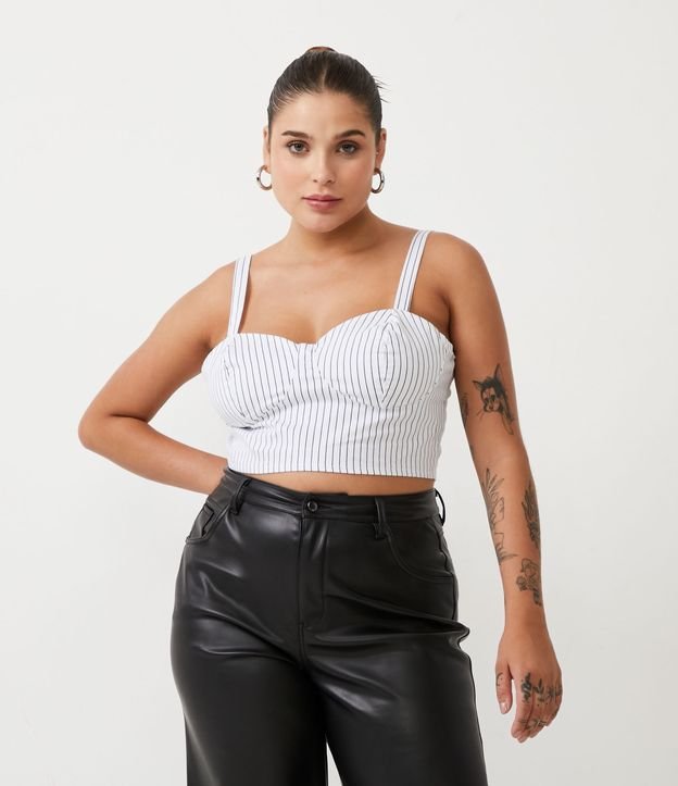 Blusa Regata Cropped em Algodão com Decote Coração e Estampa Listrada