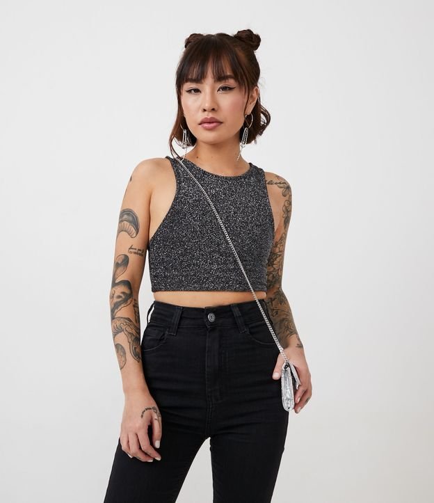 Blusa Regata Cropped em Moletinho com Fios Metalizados
