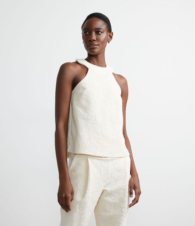 Blusa Regata em Jacquard com Textura Floral