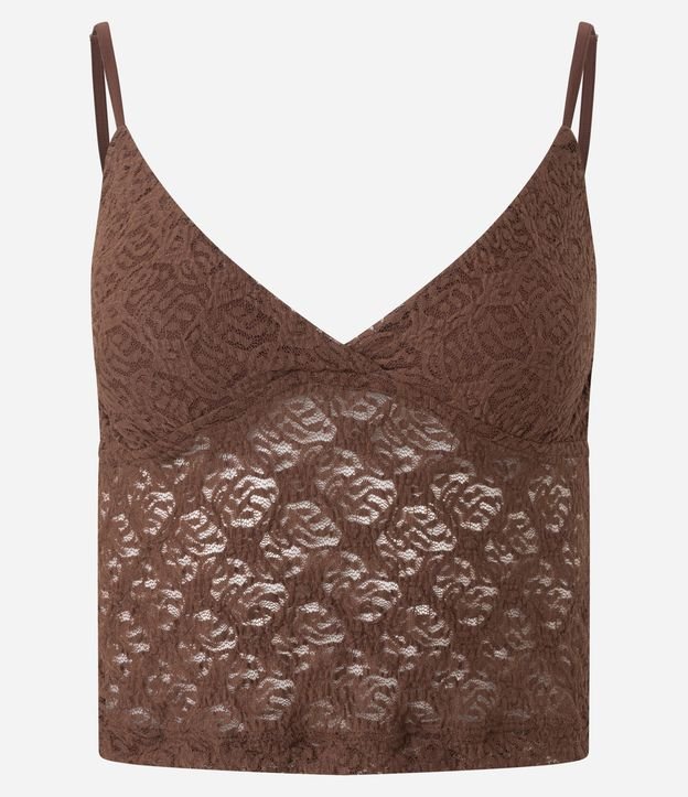 Blusa Regata em Renda Texturizada com Alças Finas Marrom