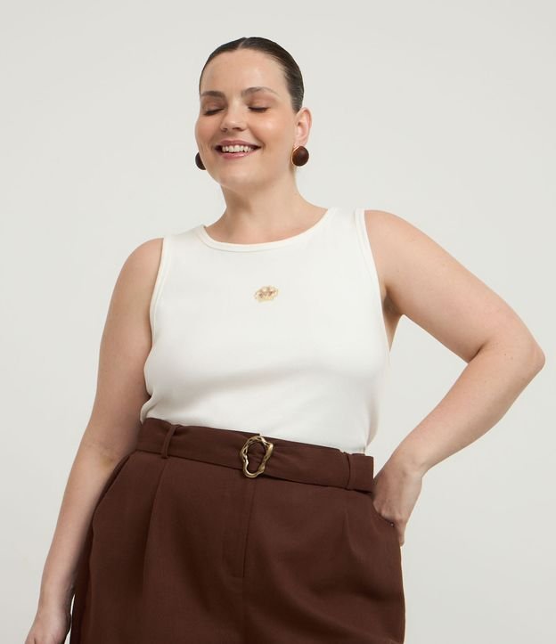 Blusa Regata em Ribana com Bordado de Concha Curve & Plus Size Branco