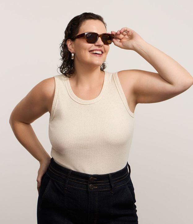 Blusa Regata em Ribana com Textura Curve & Plus Size