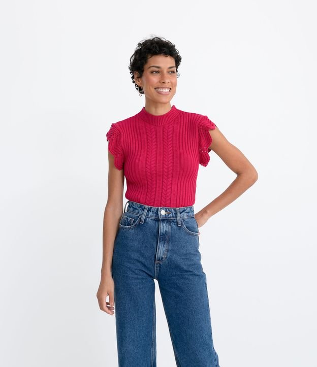 Blusa Regata em Tricô com Gola Altinha e Pontos Diferenciados