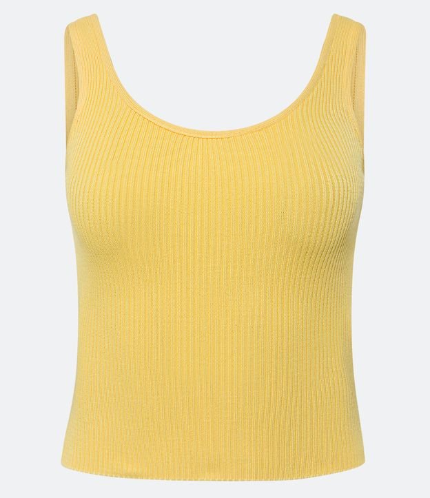 Blusa regata, em tricô com textura de listrinhas e decote U, sem estampa.