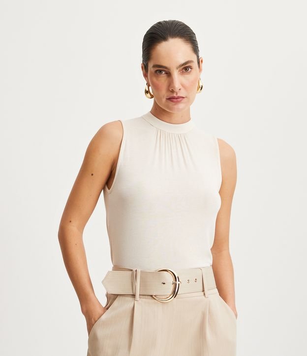 Blusa Regata em Viscolycra com Golinha Alta e Pregas