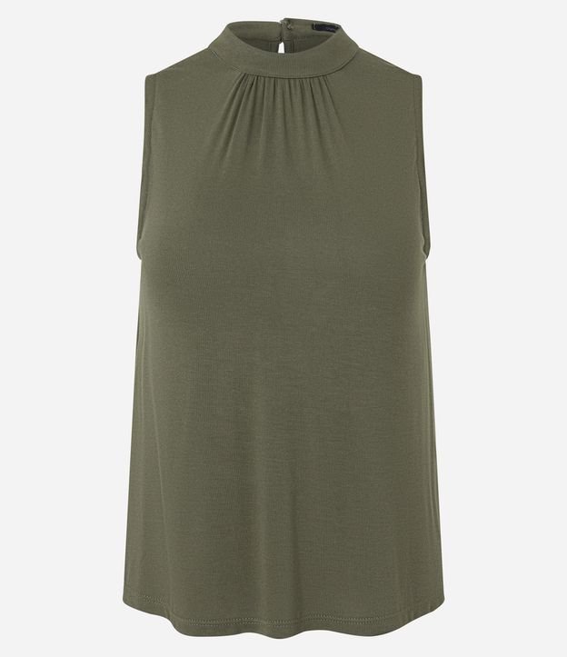 Blusa Regata em Viscolycra com Golinha Alta e Pregas