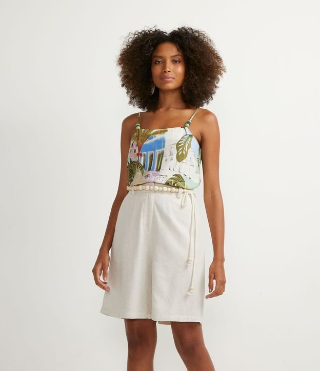 Blusa Regata em Viscose com Estampa de Folhagem e Aviamentos