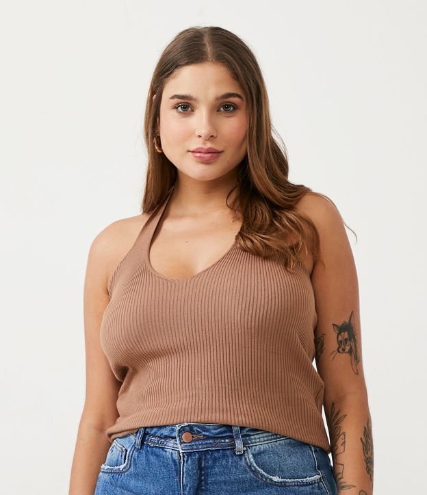 Blusa Regata Frente Única em Tricô Canelado