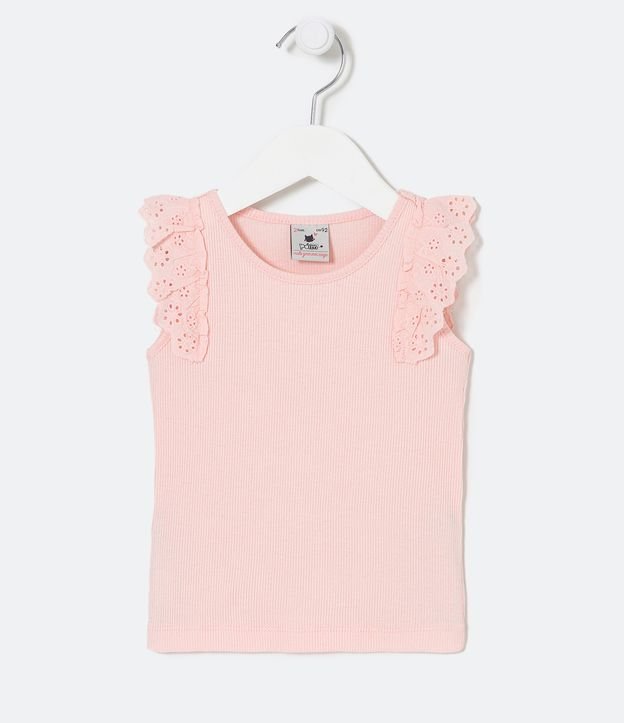 Blusa Regata Infantil com Babados Broderie - Tam 1 a 5 anos