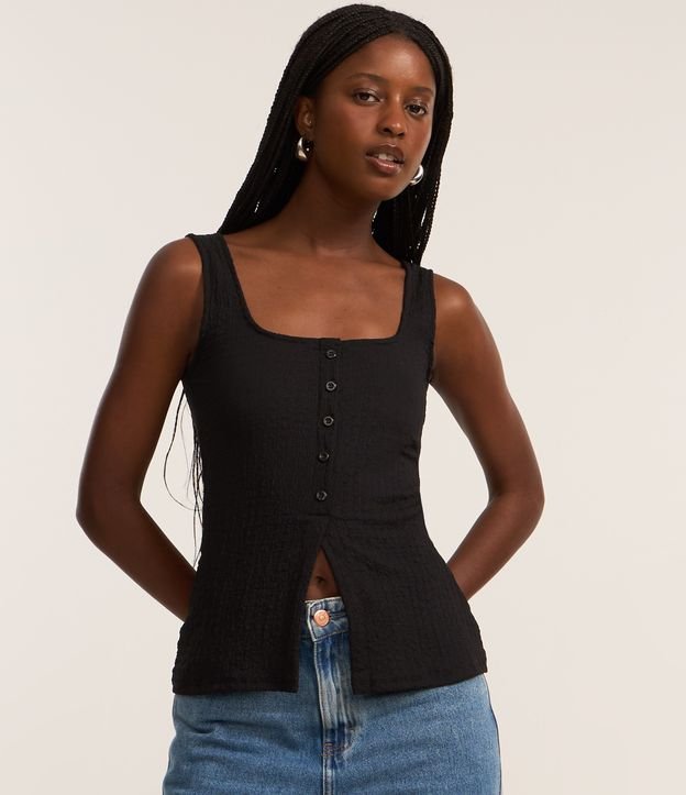 Blusa Regata Texturizada com Botões Preto