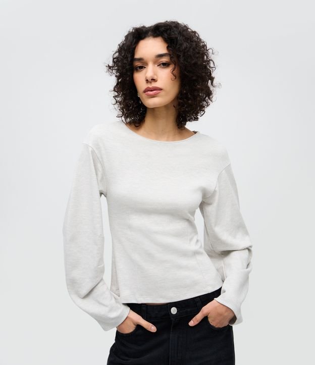 Blusa Regular com Manga Longa Ampla Off White