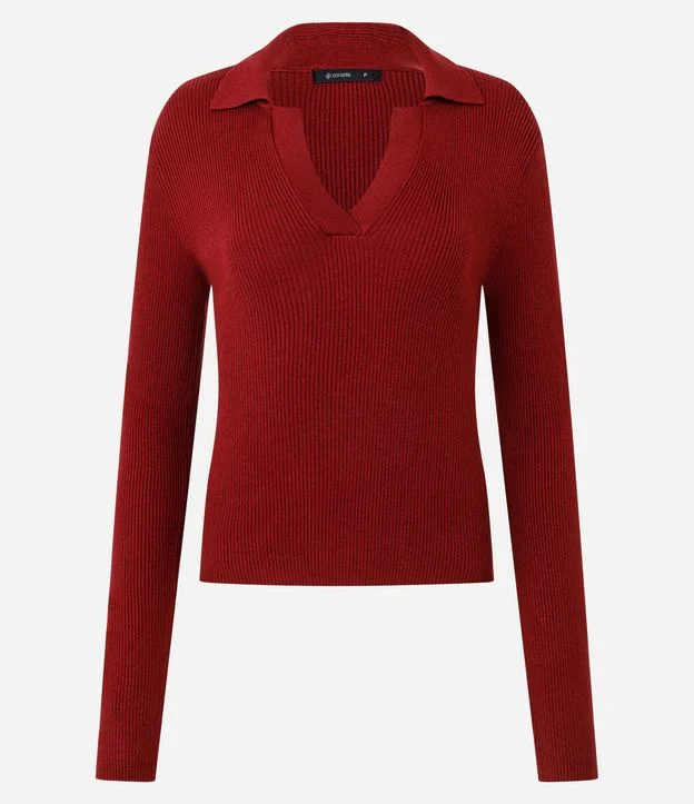 Blusa Regular com Manga Longa e Gola Polo Vermelho