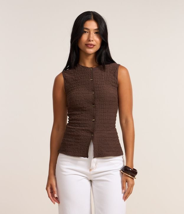 Blusa Regular em Anarruga Sem Mangas Texturizadas Marrom