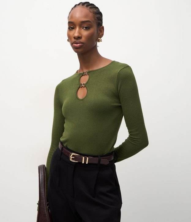 Blusa Regular em Tricô com Aviamento no Decote Verde