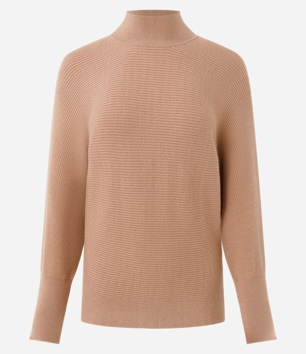 • Blusa Regular em Tricô com Gola Alta Bege 1