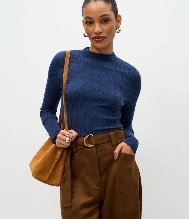 Blusa Regular em Tricô com Ponto Furadinho Azul